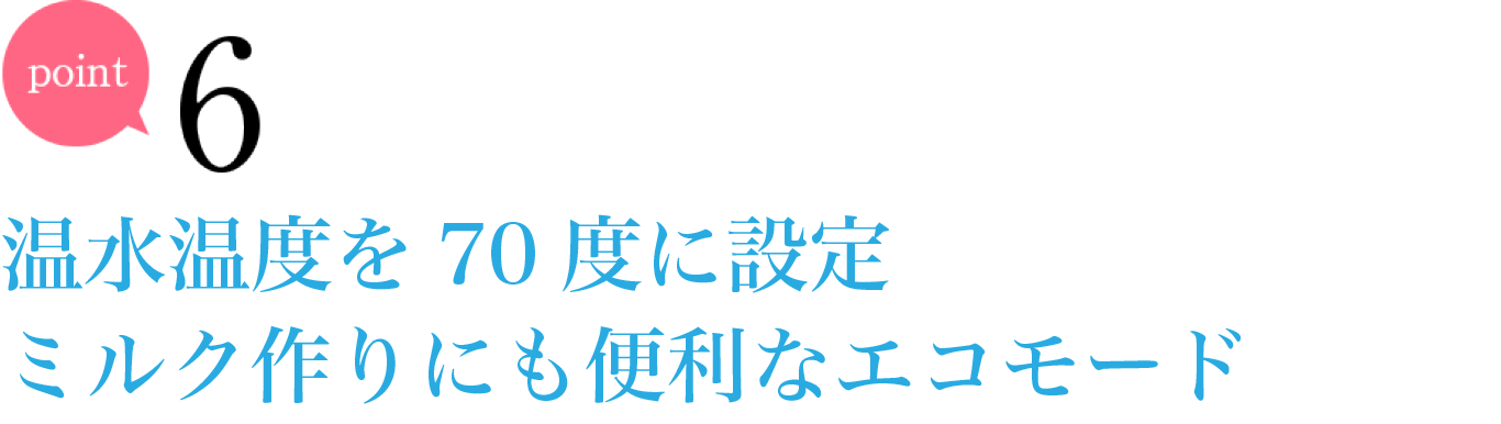 ボタン一つで温水温度を70度まで下げることが可能。お湯をあまり使わない時期等 電気代カットにオススメの赤ちゃんのミルク作りにも推奨されている温度なので調乳用にも使えます。 本来の節電と言う目的に加え赤ちゃんがいらっしゃるご家庭にも。